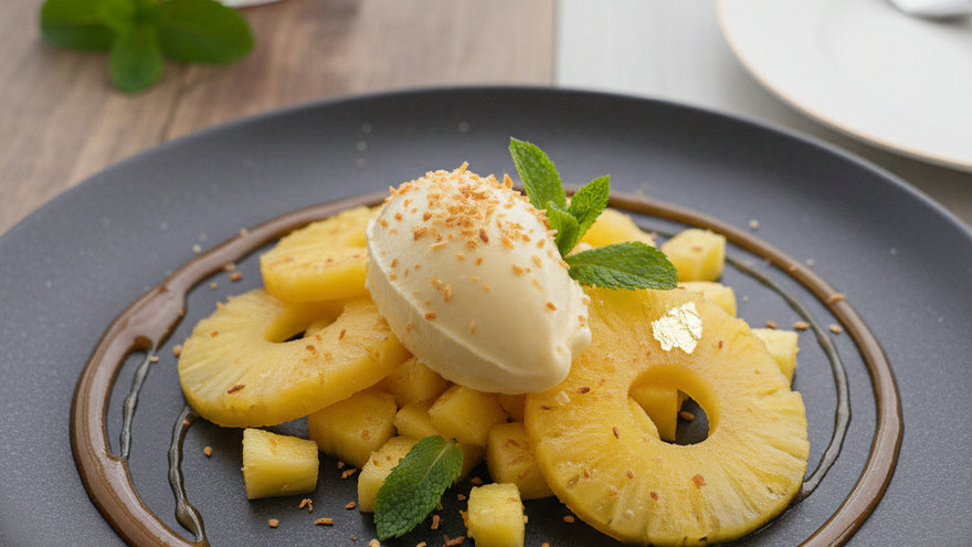 Ananá con crema de bananas