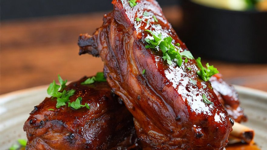 Carré de cerdo a la cerveza negra con chutney de membrillos