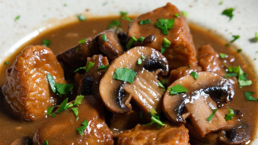 Cazuela de seitán y champiñones