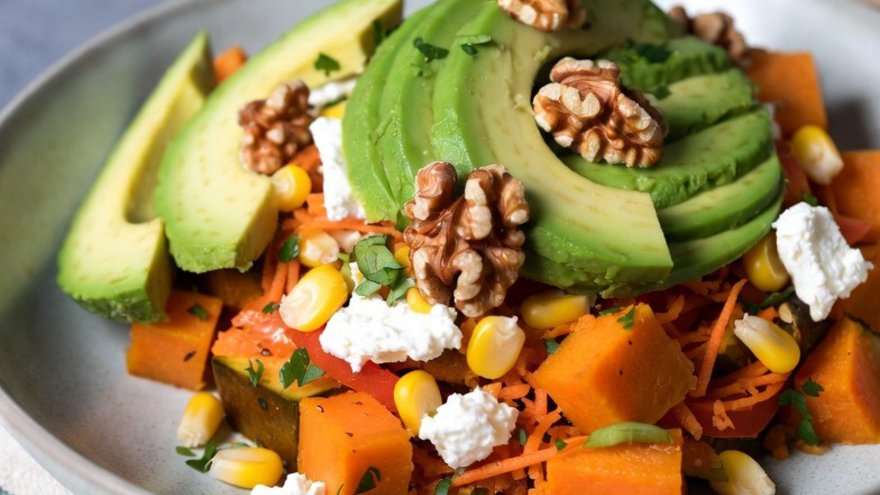 Ensalada de palta, queso y nueces