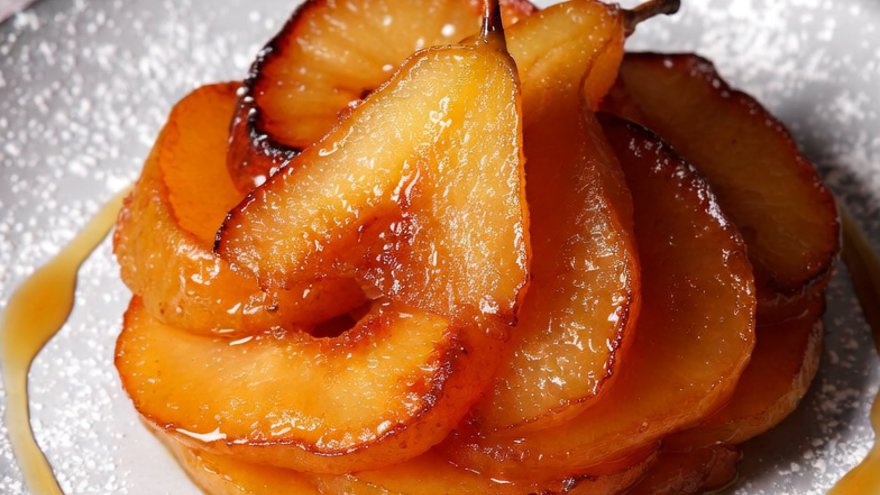 Preparar el caramelo mezclando el azúcar y la manteca, colocar las peras previamente peladas, quitadas las semillas y cortadas en mitades.