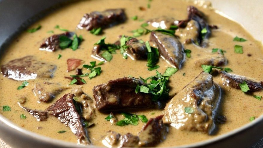 Agregar el hígado cortado en cubitos chicos, el ajo picado, el orégano, el laurel, la sal y la pulpa de tomate.
