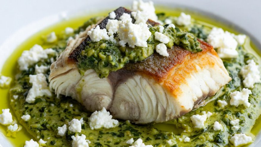 Merluza con salsa de espinacas y queso blanco