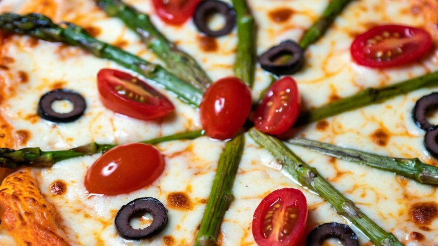 Cocinar la masa para pizza sin dorar (prepizza), agregar la salsa de tomates, colocar sobre la salsa la cebolla rehogada y sobre ésta los espárragos.