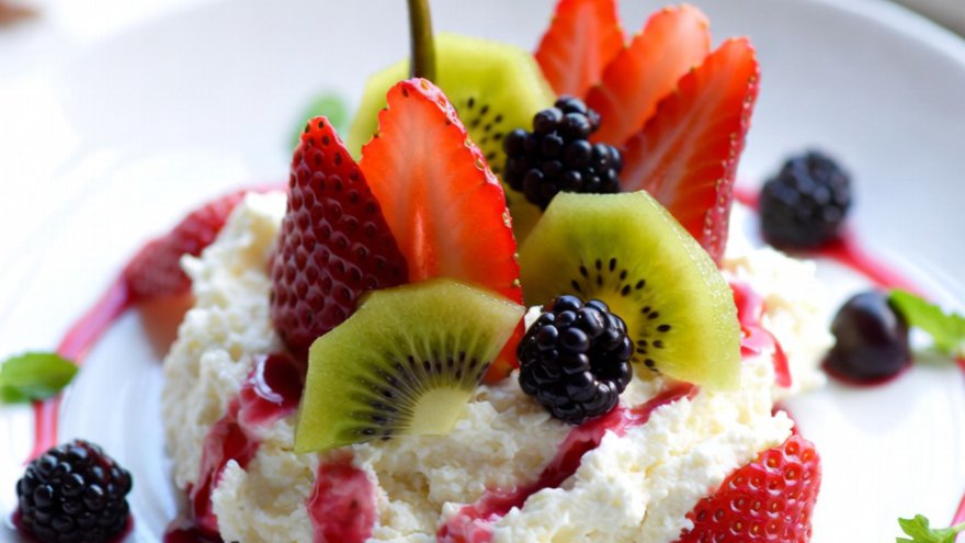 Aparte, procesar la ricotta, la fruta y el resto del edulcorante.