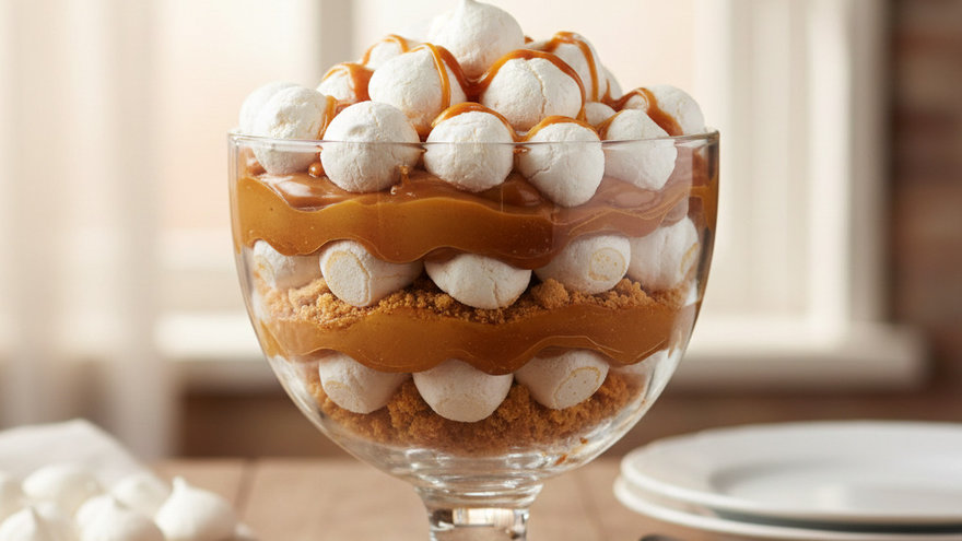 Postre fácil de galletitas, dulce de leche y merengues