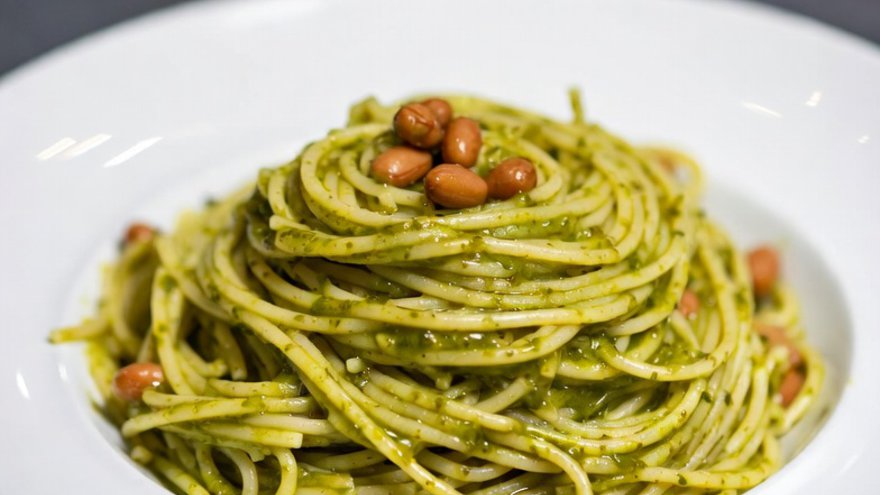 Mezclar la salsa blanca con la albahaca picada y aderezar la pasta.