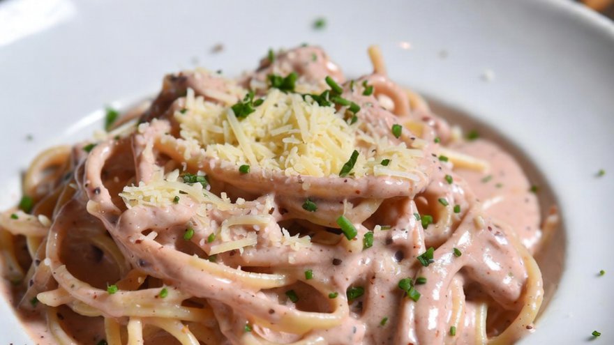 Marisa Sclavo propone preparar tallarines caseros en 3 minutos... a partir de una tapa de masa. La salsa es la clásica combinación de crema y salsa de tomate.